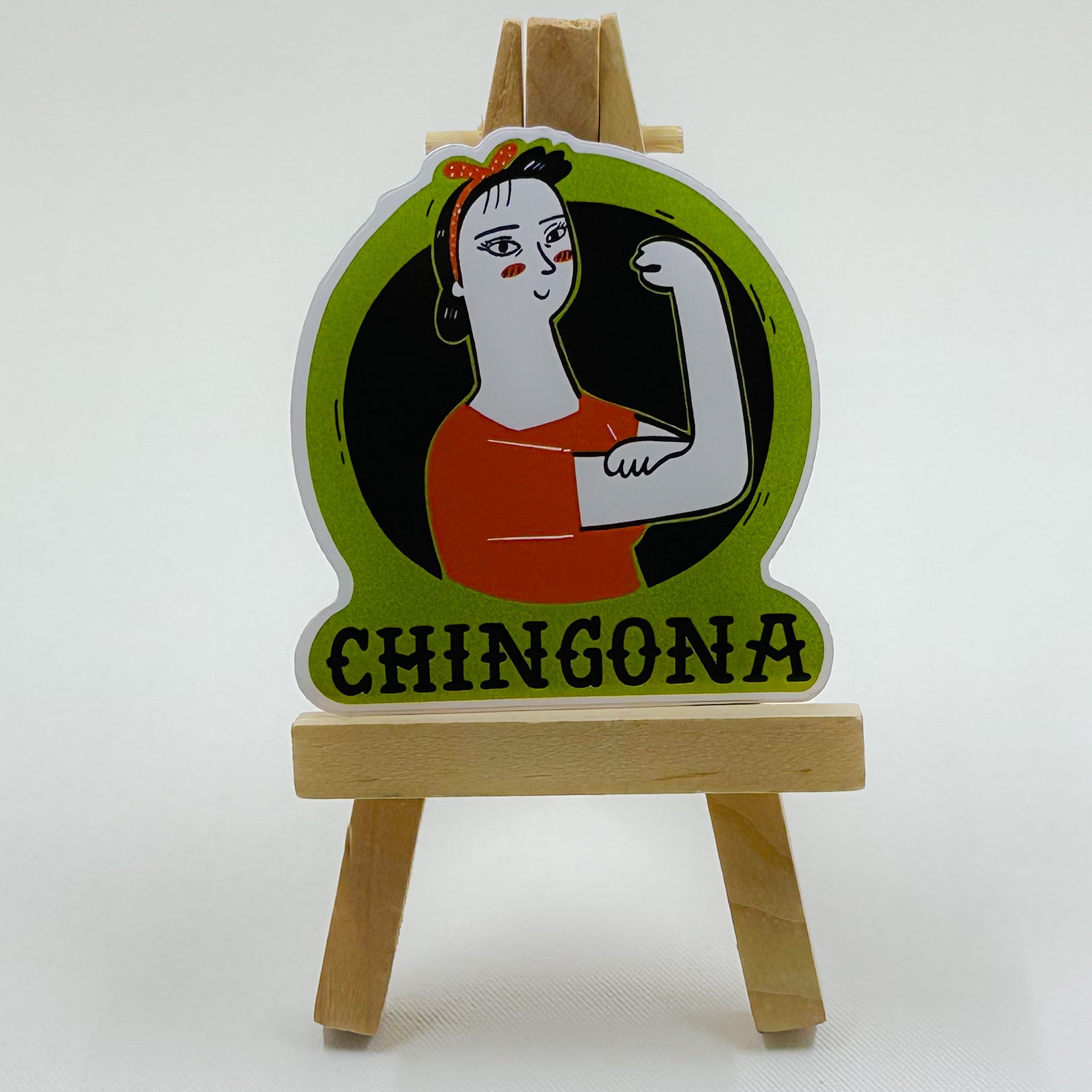 When I sell these stickers in town I get asked, "what is a chingona?" and I always say, "it means bad bitch." If you're a chignon then you have certainly come to the right place! This waterproof sticker features a Rosie the Riveter pose which exudes confidence and empowerment.